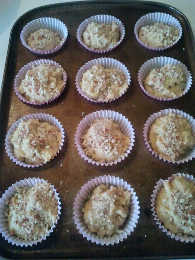 Using two dessert spoons (one to scoop up the mix from the bowl, and the other to scrape the mix into the cases) fill the cases. Scatter the top of each muffin with the chopped peanuts.