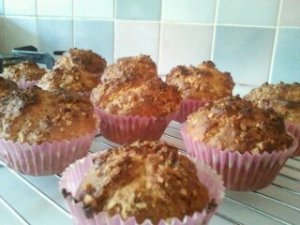 The first recipe for my blog is one from a book I found while wandering around Sainsbury’s Supermarket. Very simply entitled “Home Baking Cookbook” – Consultant Editor Jacqueline Bellefontaine, this unassuming book, for me, holds many treasures! The recipe title in the book is Fudge Nut Muffins, but as I had no fudge, well… new title.. and slight tweaking to suit what ingredients I had to hand.