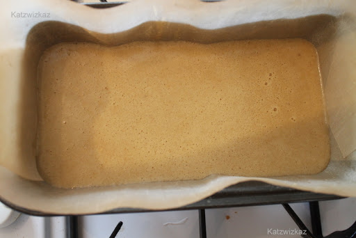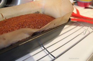 Pour the batter in to your tin, and bake for 50 – 55 minutes. Skewer test, and allow to cool for about 5 minutes in the tin.