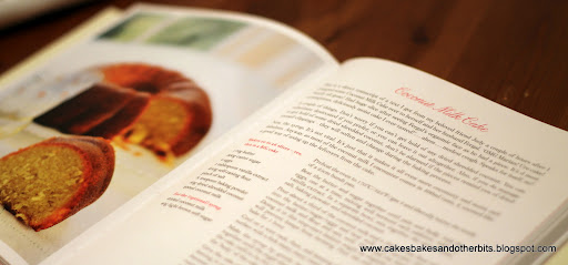 Moving swiftly onwards, I had bought a couple of cans of coconut milk, and was wondering now what to do with them. I had briefly glanced through Marian Keyes new book “Saved by Cake“, which I recently added to my collection, and found the very thing!