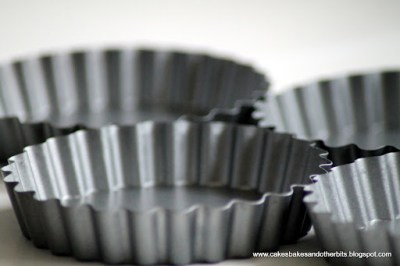 Grease and flour the tins.  Cut a small piece of pastry from the larger ball.  Roll out to just larger than the tartlet tin.  Place the pastry over the tin, and gently press into place.  To cut the overhanging pastry, just roll over with a rolling pin.