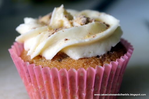 For piping the frosting on to the cakes, I used a 1M tip.  The recipe uses a plain tip.  For the flower decorations, there are step-by-step instructions in the book on how to make these.  I blitzed up a Honeycomb chocolate bar into an almost powder consistancy, and sprinkled this over the top.  An idea, admittedly borrowed from Donal Skehan’s topping for his Banoffee Pie!